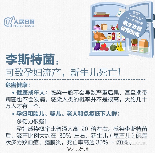 近日,國家食藥監(jiān)總局發(fā)布風險提示,李斯特菌已成威脅食品安全的重要因素。李斯特菌可致腦膜炎、敗血癥等,也可造成孕婦死胎;64%感染者家中冰箱有它身影。如何應對?使用冰箱該注意什么?