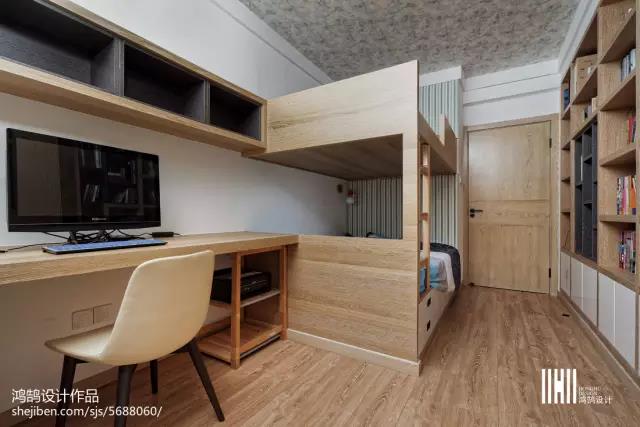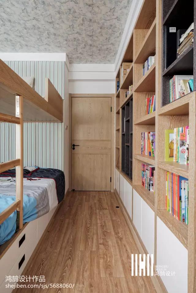 女人都喜歡浪漫、幻想,因此在主臥飄窗的搭配上運(yùn)用了藍(lán)白色,閉上眼仿佛置身天空;小孩房大面積書架看的出來,小朋友熱愛讀書的心。