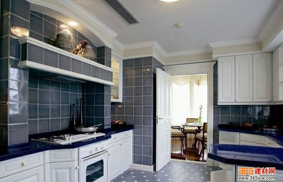 廚房的墻面磚也可以選擇一些冷色的色調(diào),不僅可以吸收廚房的熱量,而且能從感覺上使人在炎炎夏日當中倍感寧靜,心里面的降溫往往要比身體的感受來得更重要。白色的櫥柜配上簡單的瓷磚紋理,其實也可以在簡單之余做得不簡單。