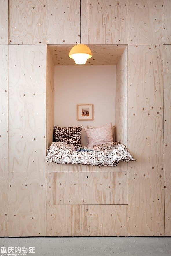 收納需求強烈的家庭,用木板打造一面墻的頂天立地大柜子,是一個好的解決辦法。