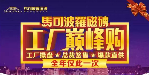 馬可波羅瓷磚工廠巔峰購(gòu),工廠操盤(pán),活動(dòng)期間,由工廠“價(jià)格督導(dǎo)專員”現(xiàn)場(chǎng)監(jiān)督,以工廠價(jià)直銷,錯(cuò)過(guò)再等三年。