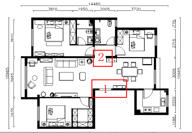 1、入戶門與餐廳墻呈直角,進門直面餐廳(如下圖)