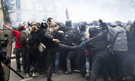 【巴黎民眾】法國(guó)歐洲杯開(kāi)賽后,反新勞動(dòng)法的游行抗議愈演愈烈,6月14日達(dá)到新高潮。據(jù)警方稱,巴黎有7.5萬(wàn)至8萬(wàn)人上街游行,法國(guó)全國(guó)示威的人數(shù)達(dá)到12.5萬(wàn)人。工會(huì)方面則表示,共有130萬(wàn)人上街游行。為組織此次游行,工會(huì)方面還準(zhǔn)備了450輛大巴,用于將參加游行的人員從外省接到巴黎。