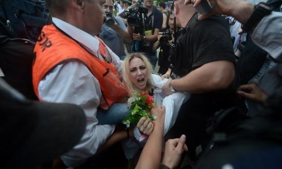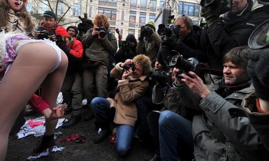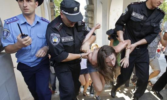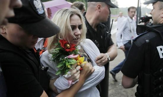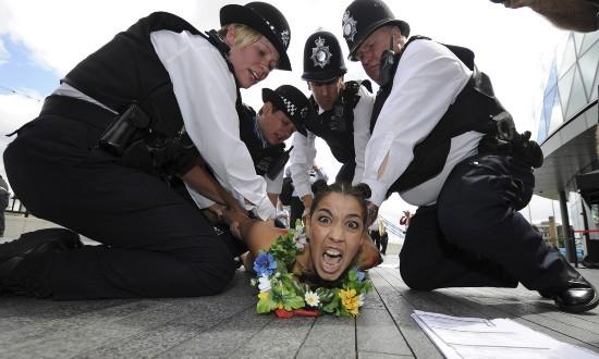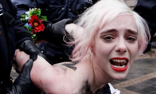 由于在公共場(chǎng)所裸露是烏克蘭法律所禁止的行為,對(duì)費(fèi)曼成員來(lái)說(shuō)短暫被拘和罰款一點(diǎn)都不稀奇。她們和警察之間的追逃游戲,以及警察強(qiáng)行遮住她們的胸部的畫(huà)面,都是歐洲各國(guó)攝影記者渴求的“好題材”。