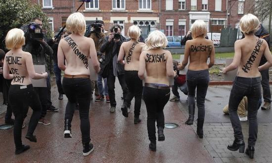 美麗而又讓人頭疼的費(fèi)曼組織成立于2008年,成員為300多名女權(quán)主義者,大部分是女性成員,也包括幾位男性。費(fèi)曼的成員多為18歲到20歲的女大學(xué)生,她們既智慧又美貌,其官方網(wǎng)站打出的標(biāo)語(yǔ)是“我來(lái),我脫,我勝”,其“斗爭(zhēng)策略”可見(jiàn)一斑。