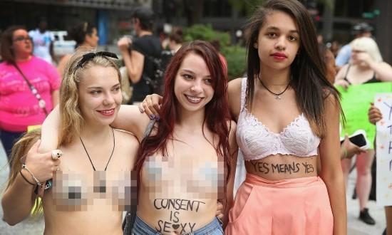 關(guān)于“袒胸露乳”的號(hào)召在社交網(wǎng)上不脛而走,其支持者和確認(rèn)參加者已達(dá)8000人,很多人上街游行,其中包括很大一部分準(zhǔn)備為世界杯服務(wù)的巴西妓女,有游行者甚至拿避孕套吹泡泡以抗議。