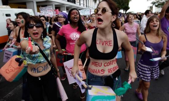 一場(chǎng)反對(duì)針對(duì)婦女暴力的抗議游行活動(dòng)——“蕩婦游行”于普世青年節(jié)期間在里約熱內(nèi)盧的街道上舉行。巴西蕩婦游行超6000人參加,除了抗議針對(duì)婦女暴力,今年游行還提出了“國(guó)家政教分離”、“墮胎合法化”、“規(guī)范賣淫行為”、“反對(duì)胎兒規(guī)約”等主題。