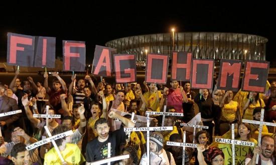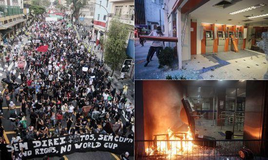 在里約熱內(nèi)盧和巴西利亞,示威者們?cè)谡T前游行,在貝洛奧里藏特,大約2000人走上街頭,許多人拿著“國(guó)際足聯(lián)滾回家!”的橫幅。除了游行示威,巴西還爆發(fā)了大規(guī)模的罷工,其中甚至包括警察。在東北部城市累西腓,暴徒們趁著警察罷工洗劫了商店。