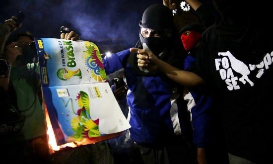 大學(xué)生多斯桑托斯說(shuō):“我們反對(duì)把過(guò)多的錢花在世界杯上,這些錢應(yīng)該被投到醫(yī)療、教育以及交通和住房中?!碑?dāng)抗議人群靠近市中心時(shí),隊(duì)伍中一些無(wú)政府主義者攻擊了一輛空警車,其他人還點(diǎn)燃了一輛小車,并打碎一家銀行的窗戶。為控制局面,警察使用了催淚瓦斯和橡皮子彈,100多名抗議者被拘留。
