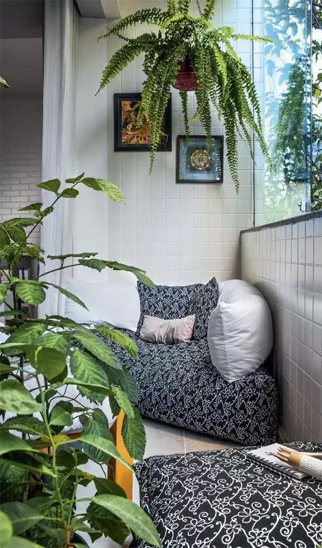 活用陽臺(tái)死角的又一個(gè)好例子,同樣可以用兩張長凳拼合實(shí)現(xiàn)。手推車和串燈是亮點(diǎn)!窄小陽臺(tái)在放了椅子之后活動(dòng)空間更小了,帶輪手推車隨時(shí)移動(dòng)讓出通道很方便。如果陽臺(tái)足夠干凈,我也希望能這樣直接癱在地上看書!坐墊也未必需要另外購置,一個(gè)懶人沙發(fā)即可替代。窄小陽臺(tái)必須祭出萬能折疊桌!這一款在宜家可以買到。儲(chǔ)物箱+坐墊=卡座凳是我們曾經(jīng)在3.11的推送中提及的一物兩用大法。即使陽臺(tái)再小,仍然可以通過書架圍合出一個(gè)書味濃濃的閱讀角。